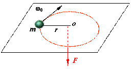 例:如图,一细绳穿过光滑水平桌面上的小孔O,绳的一端系有一质量为m的小球并放在桌面上;另一端用力往下拉住。设开始时小球以角速度w0 绕孔O 作半径r 的匀速圆周运动,现在向下缓慢拉绳,直到小球作圆周运动的半径为r/2时止。