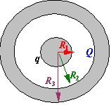 例:如图,半径为R1的金属球带电q,在其外面有带电Q同心球壳,同心球壳内外半径分别为R2、R3。