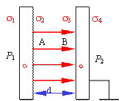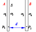 在A、B金属板内分别取p1、p2两点,一方面,两点均在金属导体内,场强为0;另一方面,两点的电场强度是各面电荷产生电场的叠加,再考虑到忽略边缘效应。有: