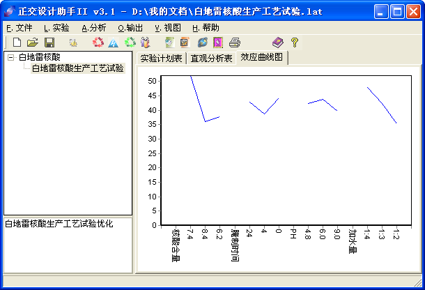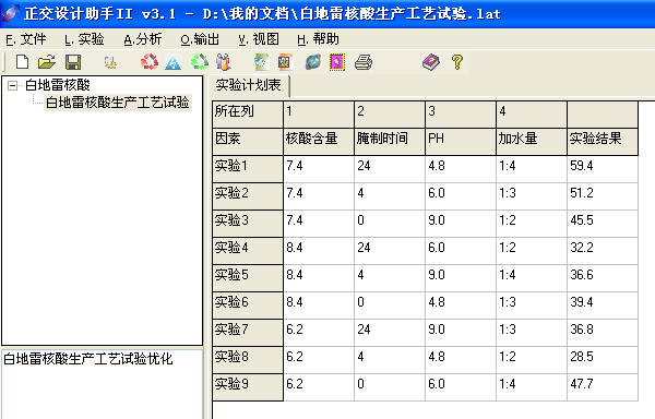 - 试验目的:原来生产中核酸的得率太低,成本太高,甚至造成亏损。试验目的是提高含量,寻找好的工艺条件。