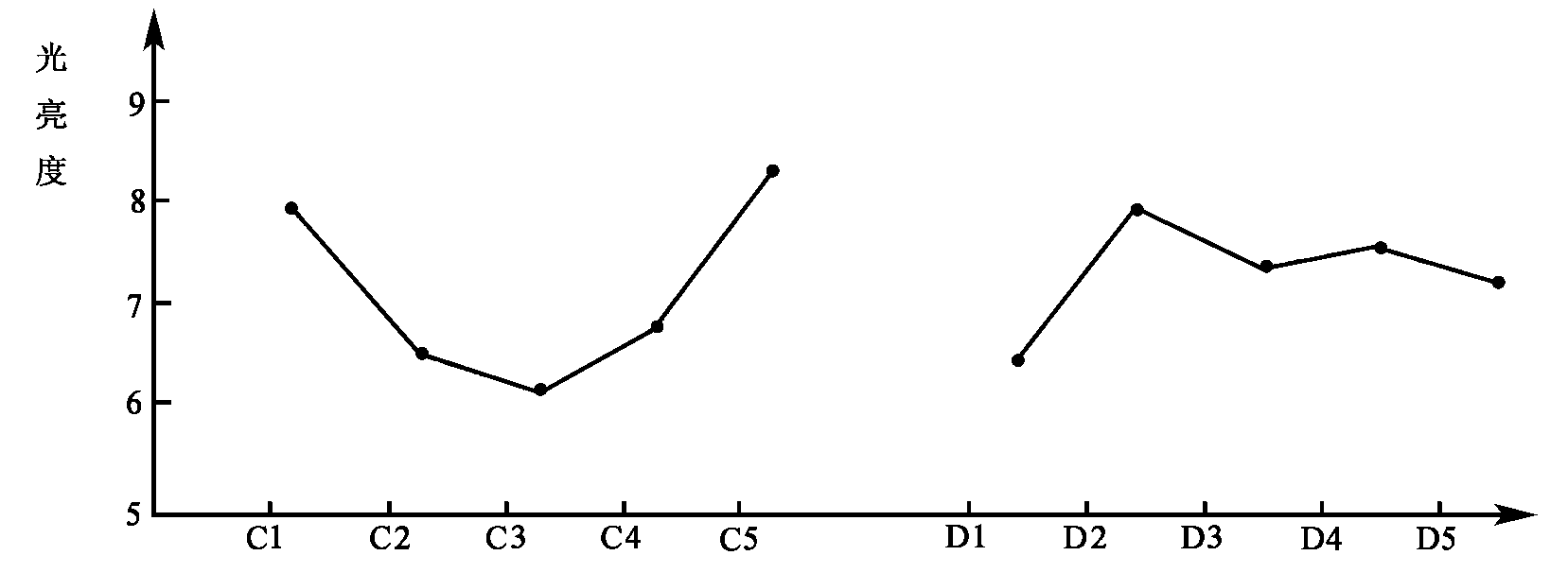 - 明度: A——B——C——D