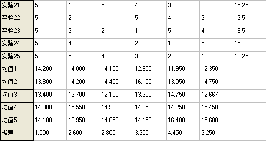 - 稳压时间对四个指标来说,对产量影响最大,对还原糖没有什么影响,对明度、色泽影响也不大,照顾产量应选C2=5分钟。但此时色泽、明度都不好,考虑将时间延长一些,定为5~7分钟。