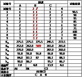 - 从图上和表上的极差都可以看出,因素的主次为