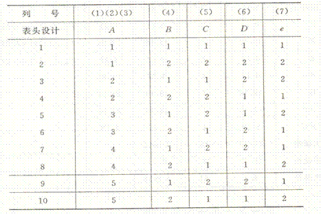 - (2)选择适当正交表,把一级因素安排在第一组(或一、二组),二级因素安排在后面一组,依次类推,不同级的因素不可在同组。